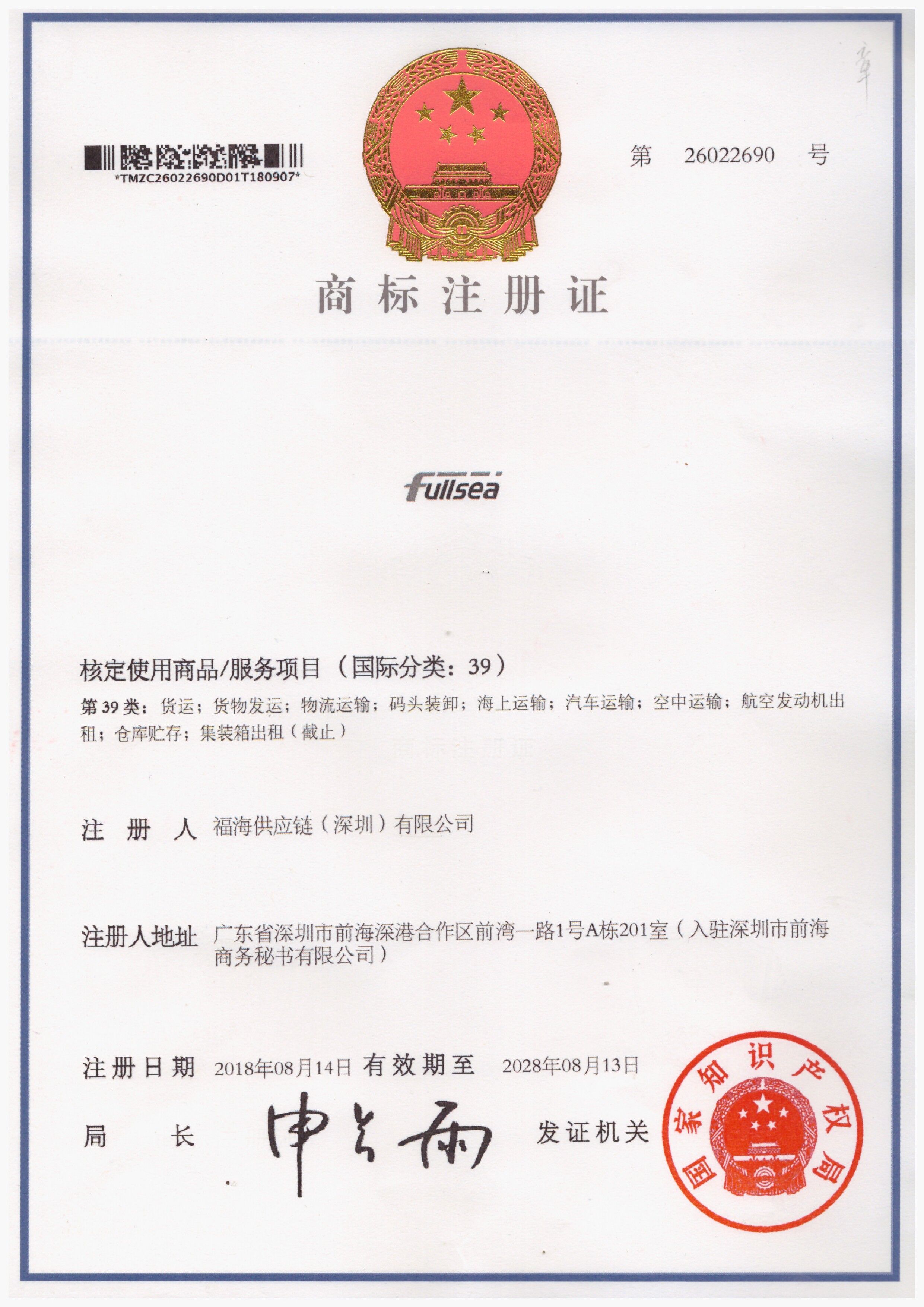 福海收到货物