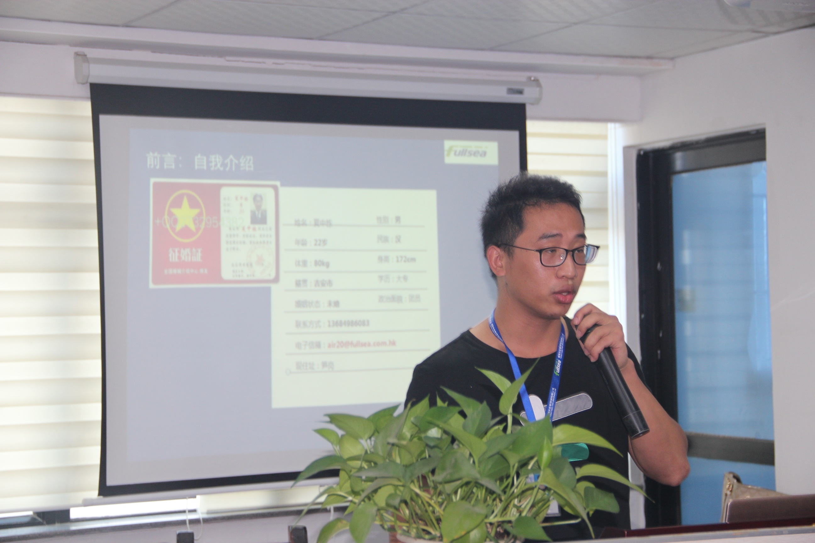Kevin的演讲非常精彩,分为四个阶段来解读自身的心路历程:选择福海-了解福海-爱上福海-扎根福海.字里行间的小俏皮和真诚,深深的打动了在坐的所有人,让大家从另外一个角度来了解福海,喜欢福海,他从一个大学刚毕业的懵懂青年,慢慢地变成了一位励志MAN,大家报以热烈的掌声。