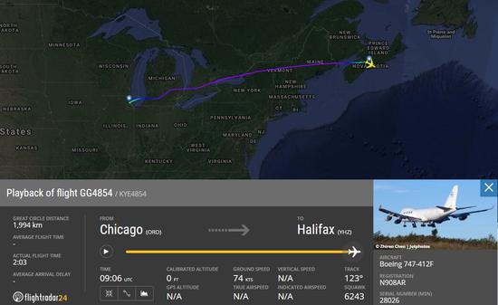 这架飞机5天前离开长沙,经安克雷奇返回芝加哥。