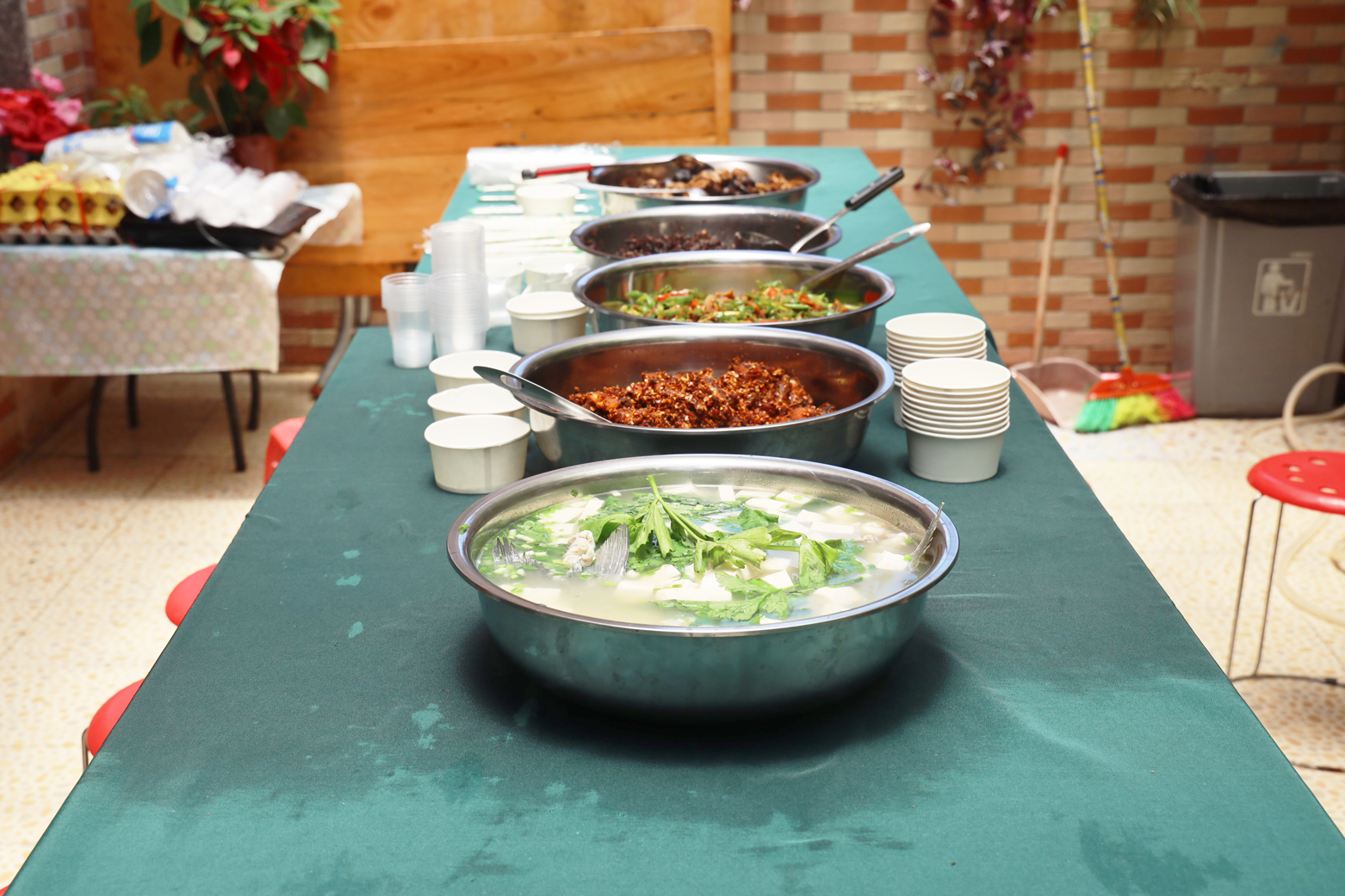 提前抵达的大厨们为我们所有人准备了中午丰富的大餐,还有小帮手们一起分工配合,洗菜、切菜,又提前在为晚餐做足准备。